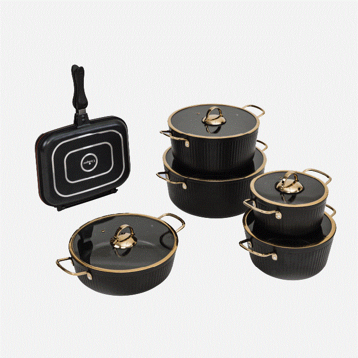سرویس قابلمه 12 پارچه فلورانس مشکی درب فلت یونیک مدل 8422