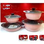 سرویس 8 پارچه قابلمه استیل کرکماز دسته صورتی