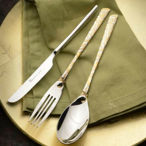 سرویس قاشق و چنگال 30 نفره طلایی براق مدل آستر برند رزنتال