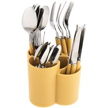 31 پارچه شامل: 6 عدد قاشق غذاخوری، 6 عدد چنگال غذاخوری، 6 عدد کارد میوه خوری، 6 عدد چنگال میوه خوری، 6 عدد قاشق چای خوری، 1 عدد استند