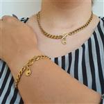 ست دستبند و گردنبند کارتیر طلایی با پلاک قفل