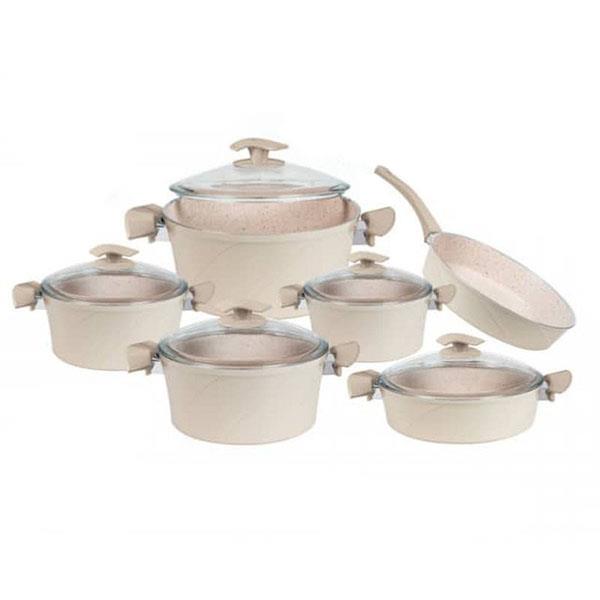 سرویس پخت و پز 7 پارچه زرساب مدل گرانیتا به همراه تابه وک هدیه
