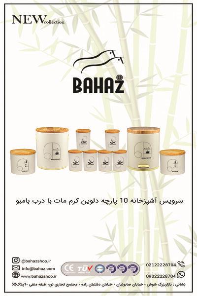 سرویس 10 پارچه دلوین کرم مات با درب بامبو برند بهازکالا