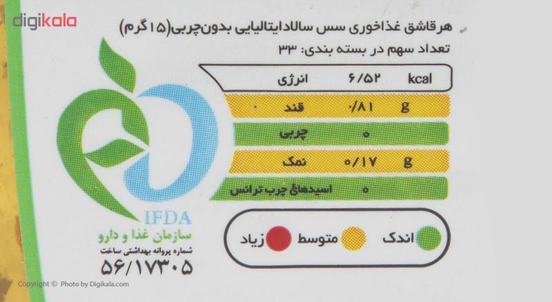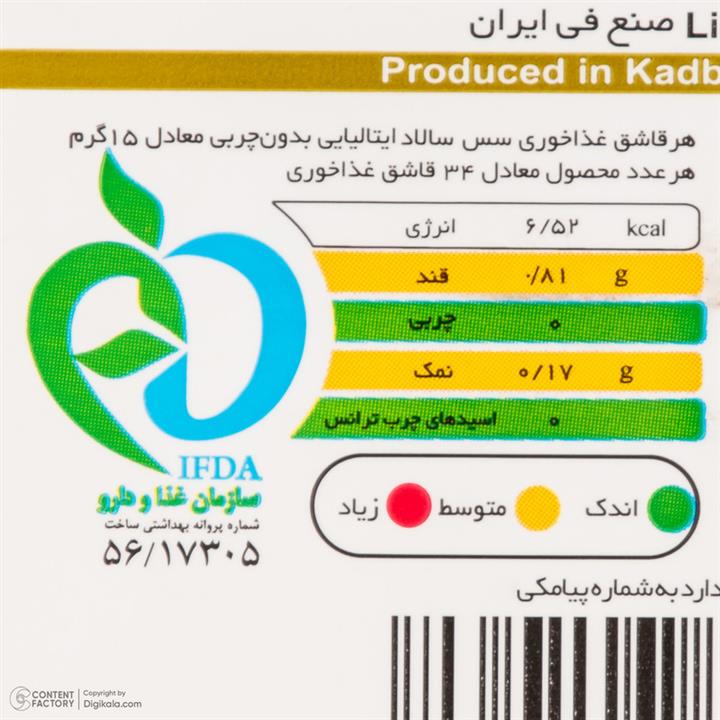 مشخصات فنی سس ایتالیایی دلپذیر مقدار 500 گرم