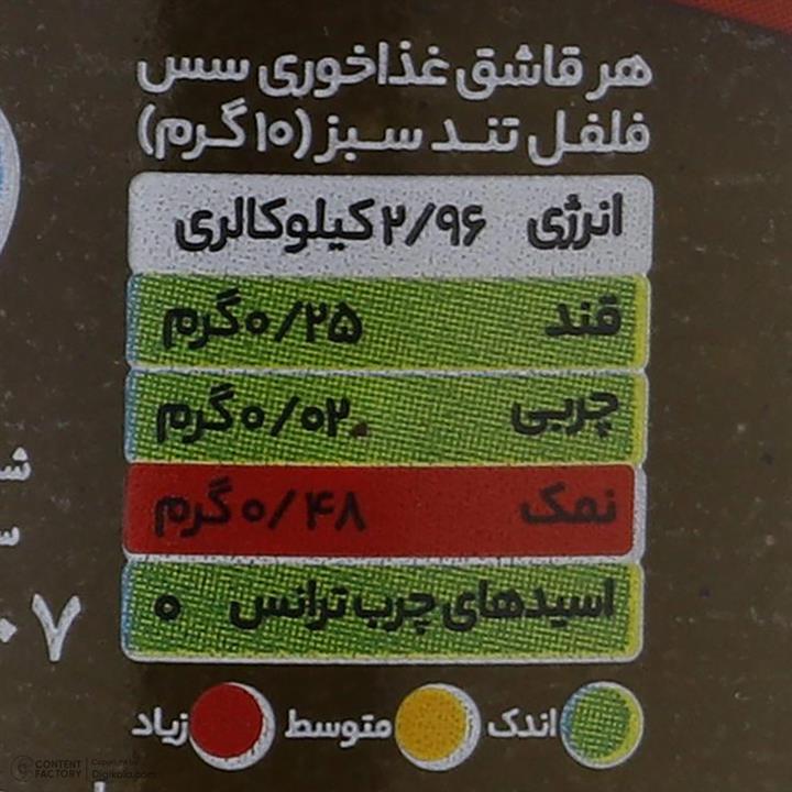 مشخصات فنی سس فلفل سبز فلیفیا مهرام - 320 گرم