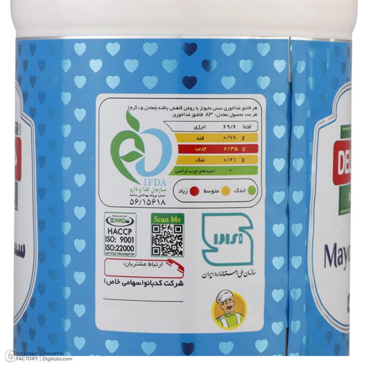 مشخصات فنی سس مایونز دلپذیر مقدار 1.247 کیلوگرم