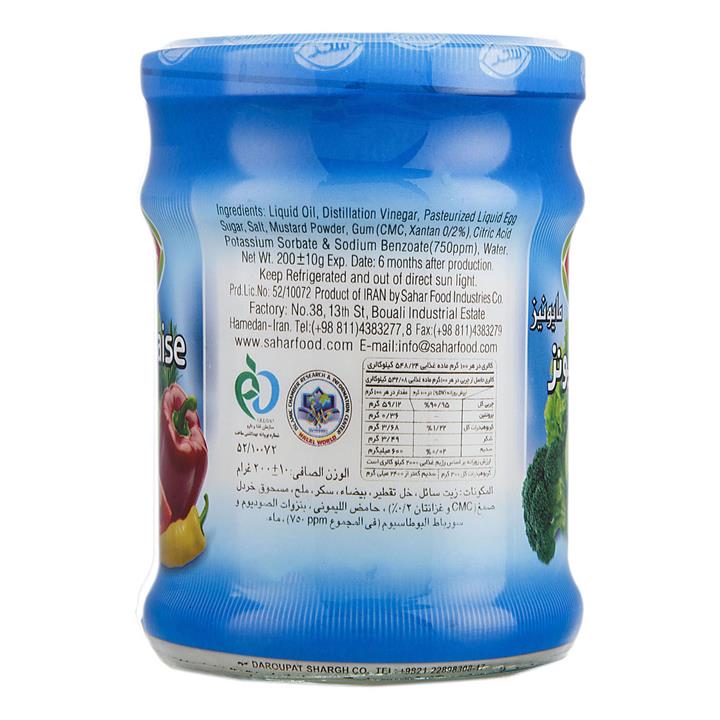 مشخصات فنی سس مایونز 200 گرمی سحر
