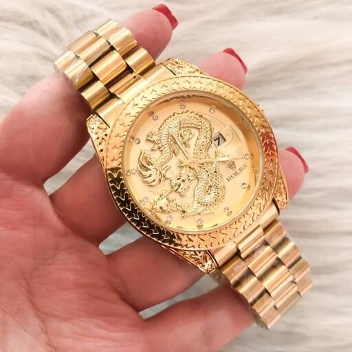 سلامت مچی مردانه رولکس تیناسادات شاپ باکیفیت شش ماه گارانتی موتور طلایی و طرح دراگون قطر38میلیمتر