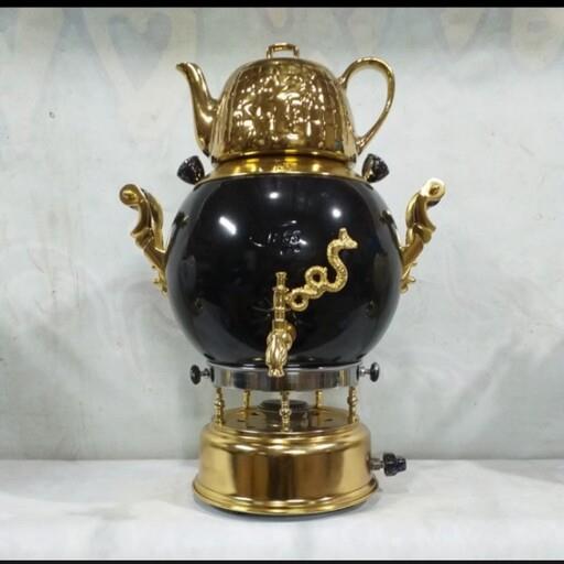 سماورگازی سماور مشکی طلایی ضخییییم سماور گازی برنجی ضخیم سه ...