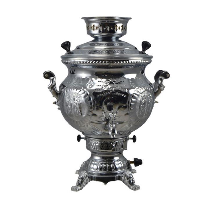 سرویس 5 تکه سماور زغالی برنجی 6 لیتری با ورق یک دهم