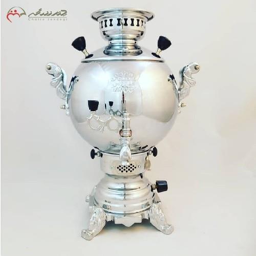 سماور گازی برنجی طرح طاووس و شکمی، آبکاری شده و کیفیت عالی د...