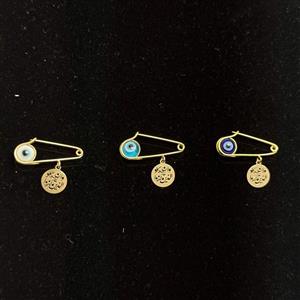 سنجاق سینه لباس نوزاد چشم نظر،استیل رنگ ثابت کاملا مشابه طلا همراه بسته بندی مناسب کادو