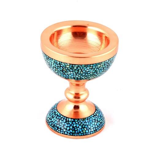 سنگ آب مس و فیروزه کوبی نیشابور 11 سانتی یا آجیل خوری هنر صنایع دستی سایروس