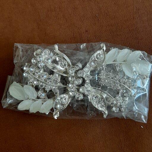 سوزن دو قلو نگین دار خارجی مدل برگ نگین دار