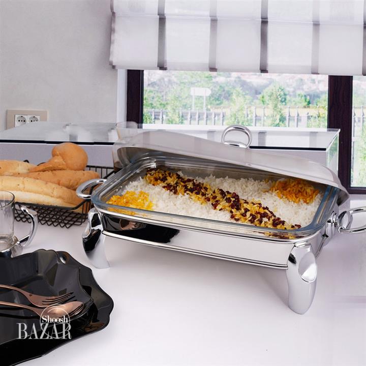 سوفله خوری استیل ام جی اس قالب مستطیل بزرگ با پایه های طلای...
