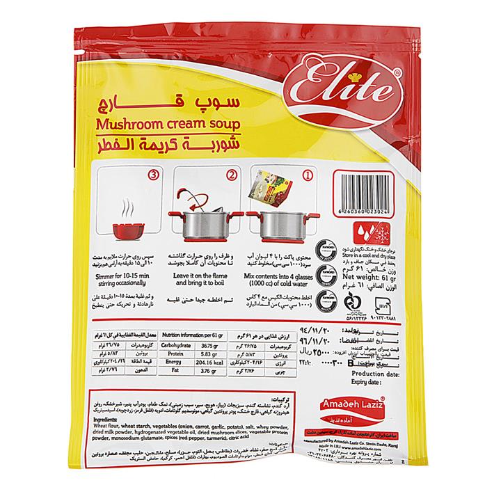 مشخصات فنی سوپ قارچ الیت 61 گرمی الیت