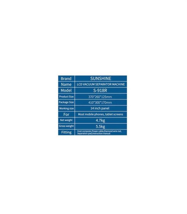مشخصات فنی سپراتور و تاچ بردار 14 اینچی سانشاین SUNSHINE S-918R