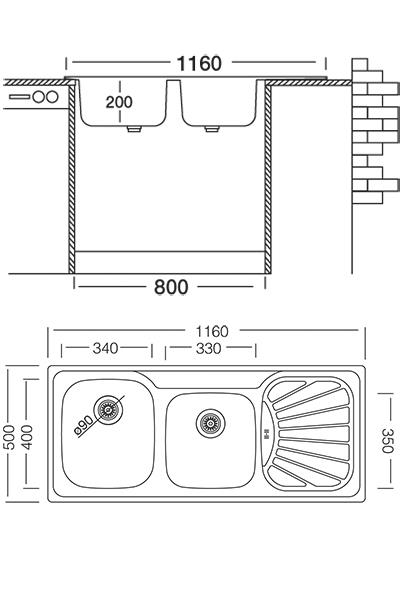 مشخصات فنی سینک کن توکار مدل : 329