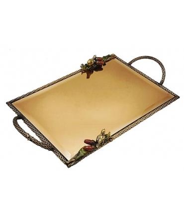 سینی ارشاکو هوم مستطیلی برنجی آنتیک میناکاری گنجشک و بلوط Ershaco home Antique brass Rectangular tray