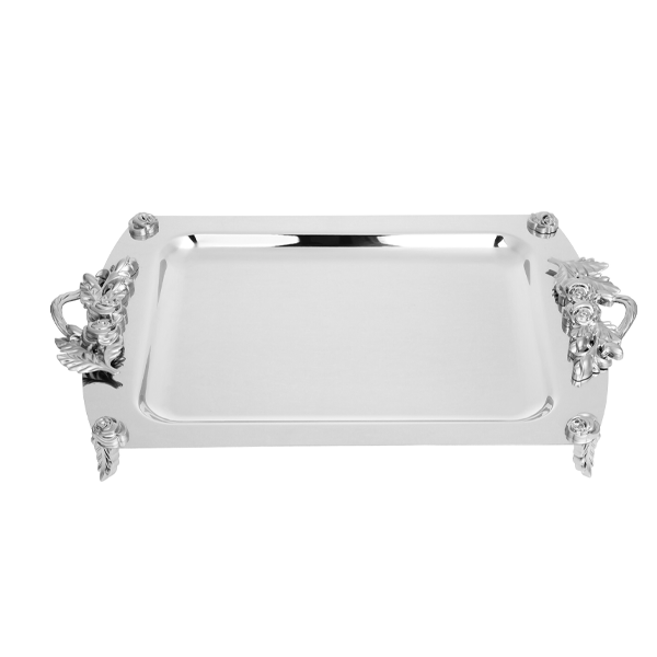 سینی مستطیل آینه ای با دسته گل رز صدفی KST سایز متوسط کد 217...