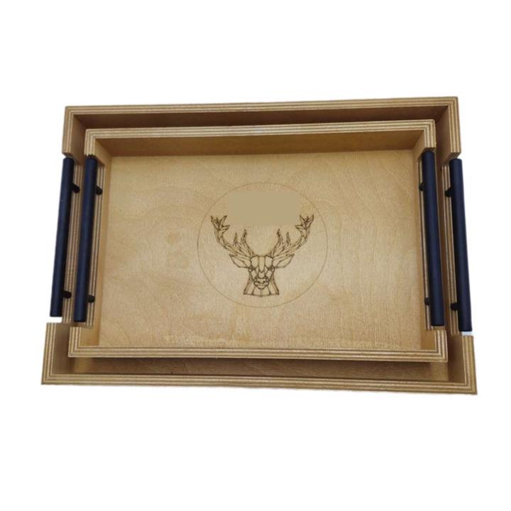 سینی مدل چوبی دسته فلزی کد R6398 مجموعه 2 عددی