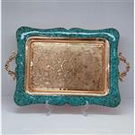 سینی مستطیل مسی فیروزه کوبی قلم زنی شده