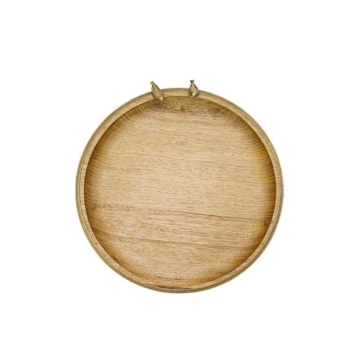 سینی گرد چوبی برنجی گلدکیش Golden Bird کد GK829472