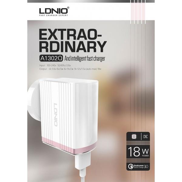 شارژر دیواری 3A LDNIO A1306Q به همراه کابل میکرو یو اس بی