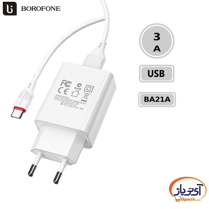 شارژر دیواری فست شارژ بروفون مدل BA21A به همراه کابل تبدیل m...