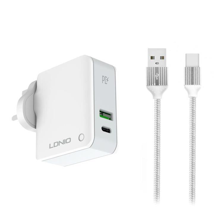 شارژر دیواری فست شارژ LDNIO A2313C 2Port QC3.0 PD 18W + کابل Type-C