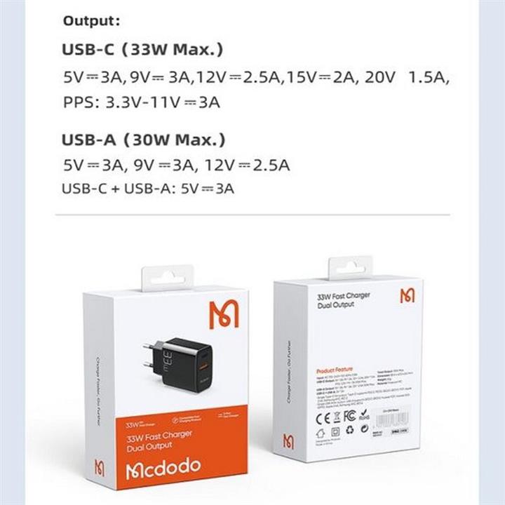 شارژر دیواری مک دودو Mcdodo CH-0921 PD Type C USB توان ۳۳ وا...