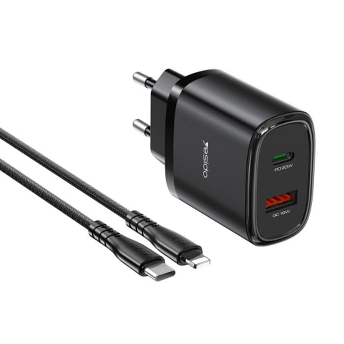 شارژر دیواری 20وات یسیدو مدل yesido yc47 کابل آیفون