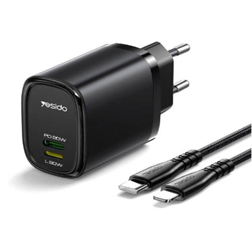 شارژر دیواری Yesido مدل YC44 به همراه یک کابل Type-C به Lig...