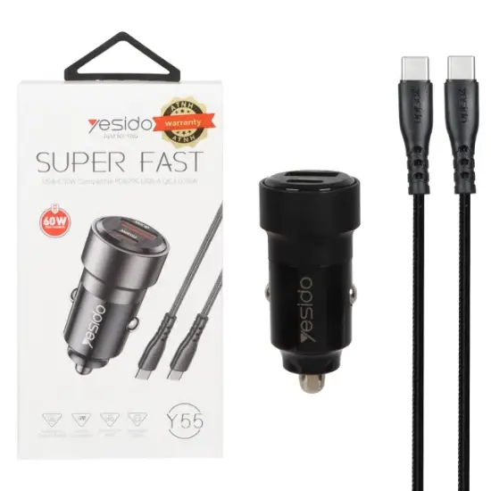 شارژر فندکی 60 وات یسیدو مدل Y55 به همراه کابل USB-C