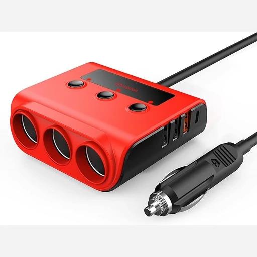 شارژر فندکی 120 وات با صفحه نمایش با 4خروجی USB و3 خروجی فند...