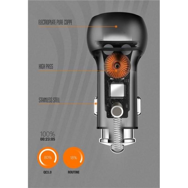 شارژر فندکی فست شارژ ماشین دو پورت سریع الدنیو با کابل تایپ ...