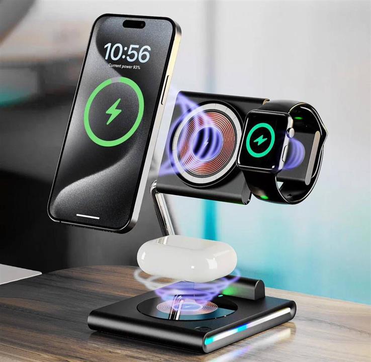 شارژر وایرلس مگ سیف رومیزی ۳ در ۱ تاشو