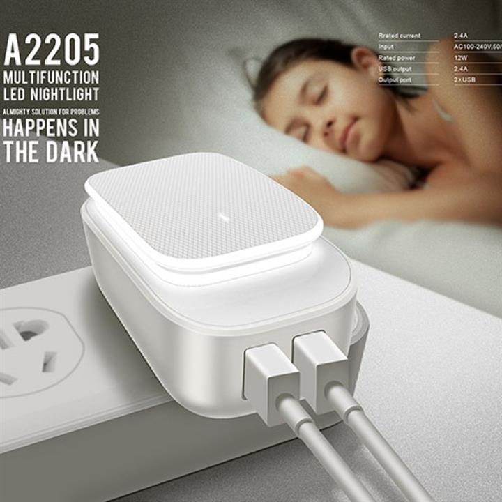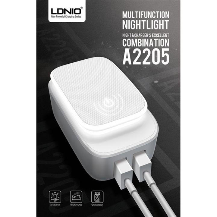 شارژر دیواری 2 پورت و چراغ خواب الدینیو مدل LDNIO A-2205 به ...