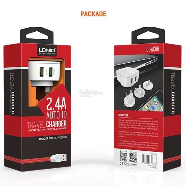 شارژر LDNIO DL-AC66 2Port 2.4A + کابل آیفونی