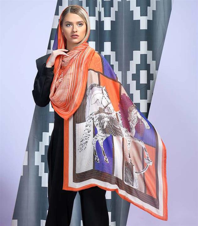 شال حریر دولایه مجلسی هرمس طرح اسب نارنجی 2766