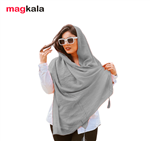 شال نخی منگوله دار رنگ طوسی کم رنگ | شال تک رنگ