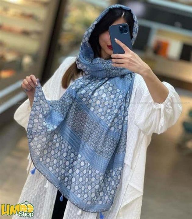 شال دخترانه نخی تابستانه آبی سفید کد 2326