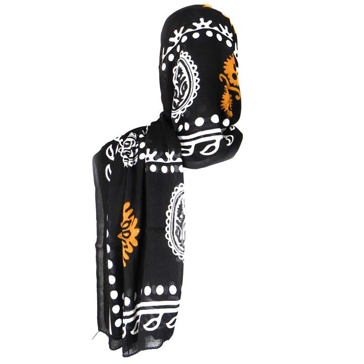 شال زنانه سنتی کردستان طرح ترنج رنگ مشکی- نارنجی