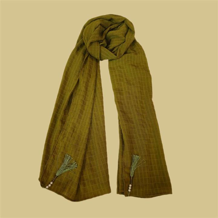 شال زنانه نخی طرح گل رز رنگ سبز مغز پسته ای کیفیت عالی