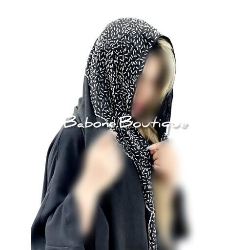 شال مجلسی مشکی کوپرا جواهر دوزی طرح نگین موج دار نقره ای