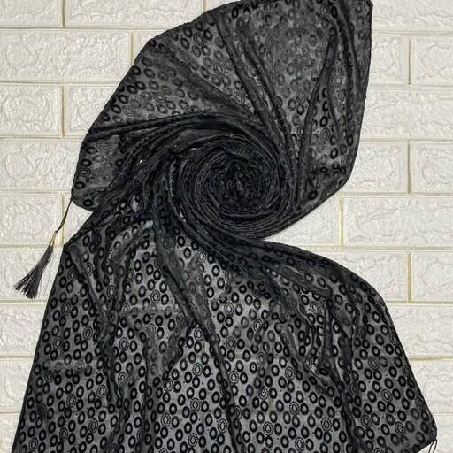 شال زنانه حریر شیشه ای طرح گل برجسته مخمل