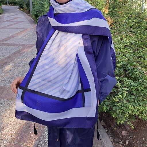 شال نخی آبی کاربنی