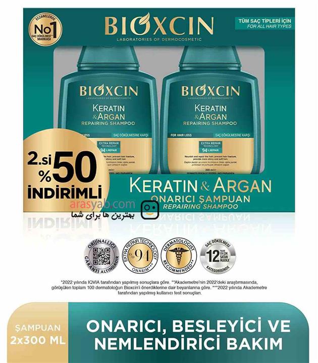 پک شامپو کراتین و آرگان بیوکسین Bioxcin اورجینال بسته 2 عددی