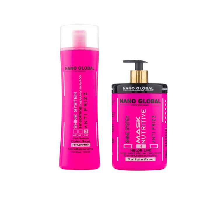 شامپو نانوگلوبال مدل موی فر حجم 1000 میلی لیتر به همراه ماسک مو نانوگلوبال مدل موی فر حجم 1000 میلی لیتر