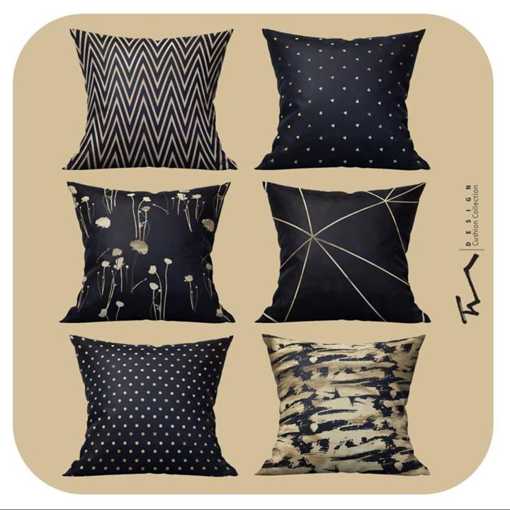 شش عدد کاور کوسن طرح سارینا 2 - 40 در 40 - جنس مخمل پورش - زمینه سورمه ای تیره